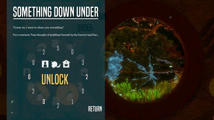 The words funnel into one of a dozen categories, ranging from centering on characters, to locations in the world itself. The problem is: When I got to the end-of-episode word cloud, I could barely remember the context any of the phrases were said in. I couldn't recall who said it, nor why. This led to me just picking what words stuck out. The points accrued for the categories are then able to be spent on unlocking text adventures that are strewn across The Terminal. Alas, I only was able to experience a slim amount of them on my first playthrough, because I often found myself lacking one required category point to unlock a story. As a result I often had lopsided point totals, such as five points to spend on Melbourne-related stories with none of the other points necessary to actually unlock them.